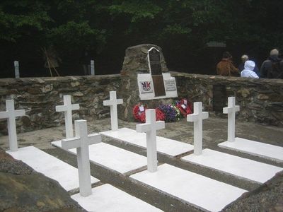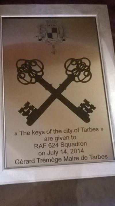 The Commonwealth War Graves Commission did not recognise these graves until 2014 due to their inaccessibility. The men had been officially listed as "missing" since 1944. It was 70 years to the day, on 14th July 2014 when the CWGC finally placed a plaque in the local churchyard to commemorate the 7 aircrew. At a ceremony on July 12th 2014 the members of 624 squadron were given the freedom of the local city of Tarbes.